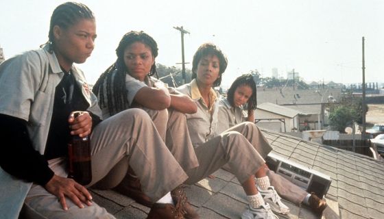Queen Latifah, Kimberly Elise, Vivica Fox and Jada Pinkett all sitting on the roof of a house in a scene from the film ‘Set It Off’, 1996. (Photo by New Line Cinema/Getty Images) arts culture and entertainment,horizontal,movie,film industry,sitting,1990-1999,jada pinkett smith,vivica a. fox,queen latifah,kimberly elise,rooftop